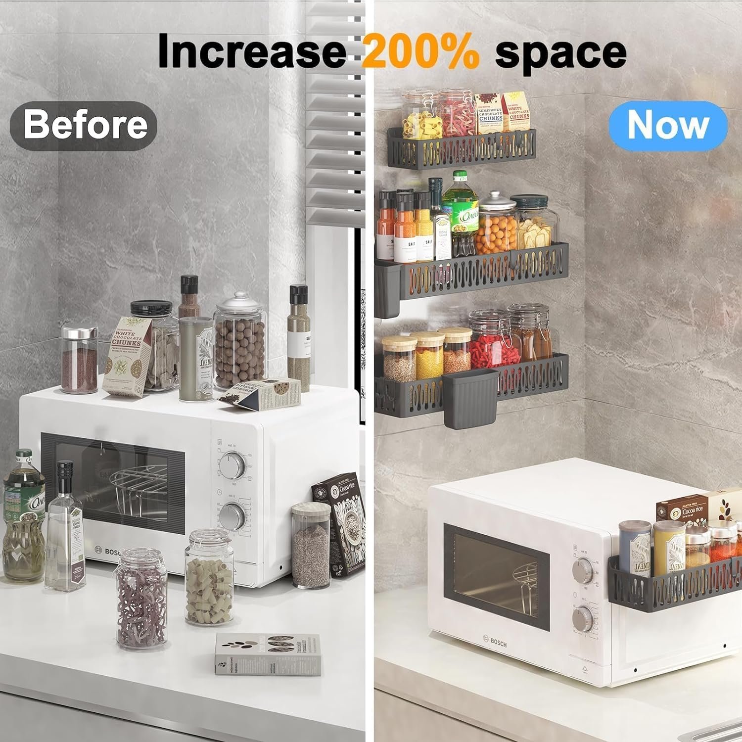 - 【 Wide Applications 】These are not only applicable to the kitchen shelves, but also to any place that requires storage and organization. The magnetic shelves can attach soundly to the side of the microwave, refrigerator, stove, BBQ smoker, washer, dryer.