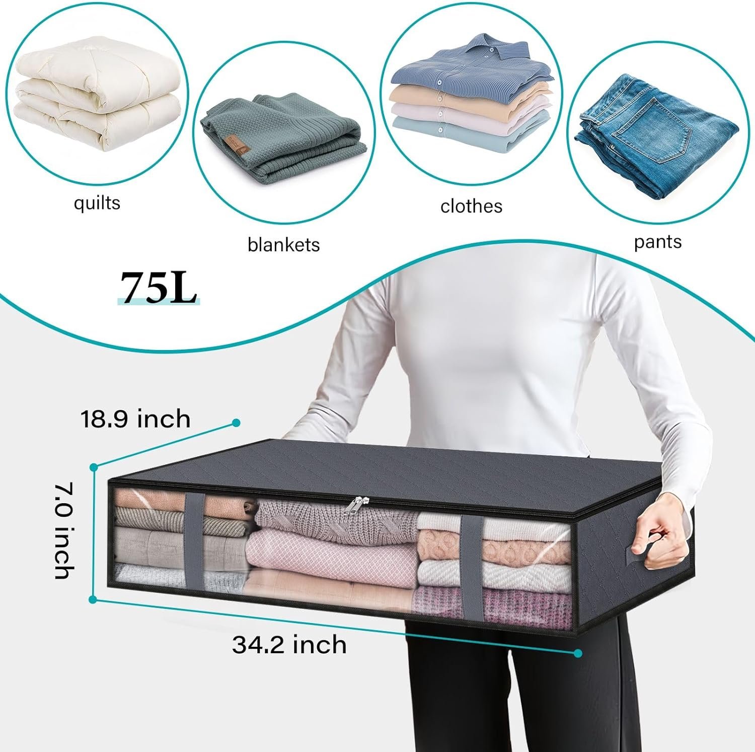- [Large Capacity] ☆The extra-large storage bags are 34.3” x 18.9” x 7.1” with a capacity of 75 liters. It has a large capacity to hold any items, such as clothes, blankets, shoes, clothes, and pillows.