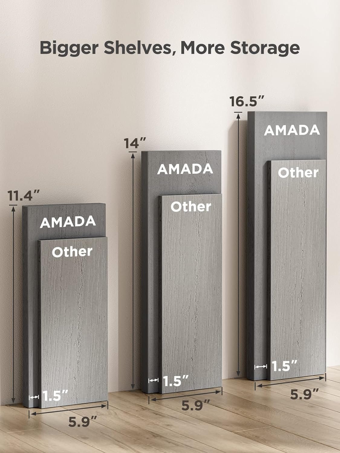 • Size Does Matter: With a size of 16.4 inches, these wall shelves are wider and longer than regular shelves on the market, providing more room and worry-free storage! Large: 16.4 × 5.9 × 0.7 inches; Medium: 14 × 5.9 × 0.7 inches; Small: 11.4 × 5.9 × 0.7 inches. Easy to install within a few minutes with all necessary hardware included.